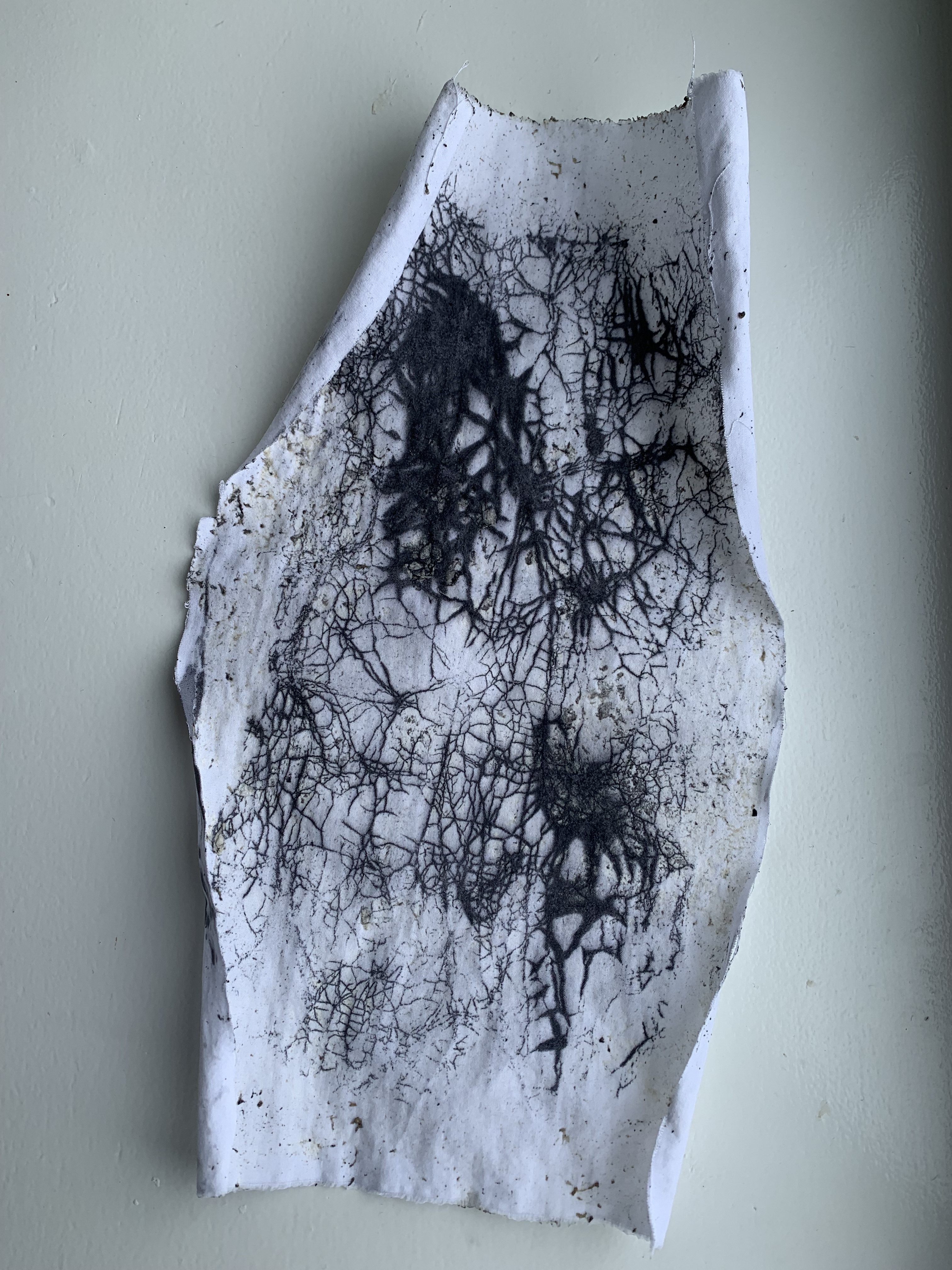 Inspired by the ceramics of the Song Dynasty, this experiment is made by starching the fabric with water and flour. When dry, cracked gently and painted over with indian ink.