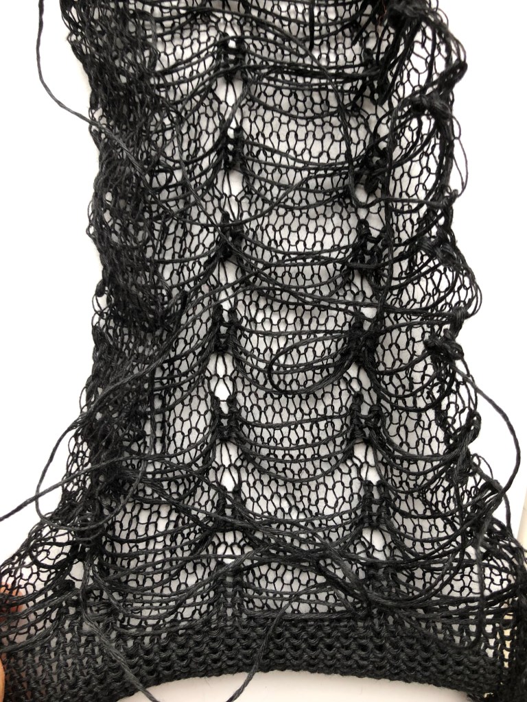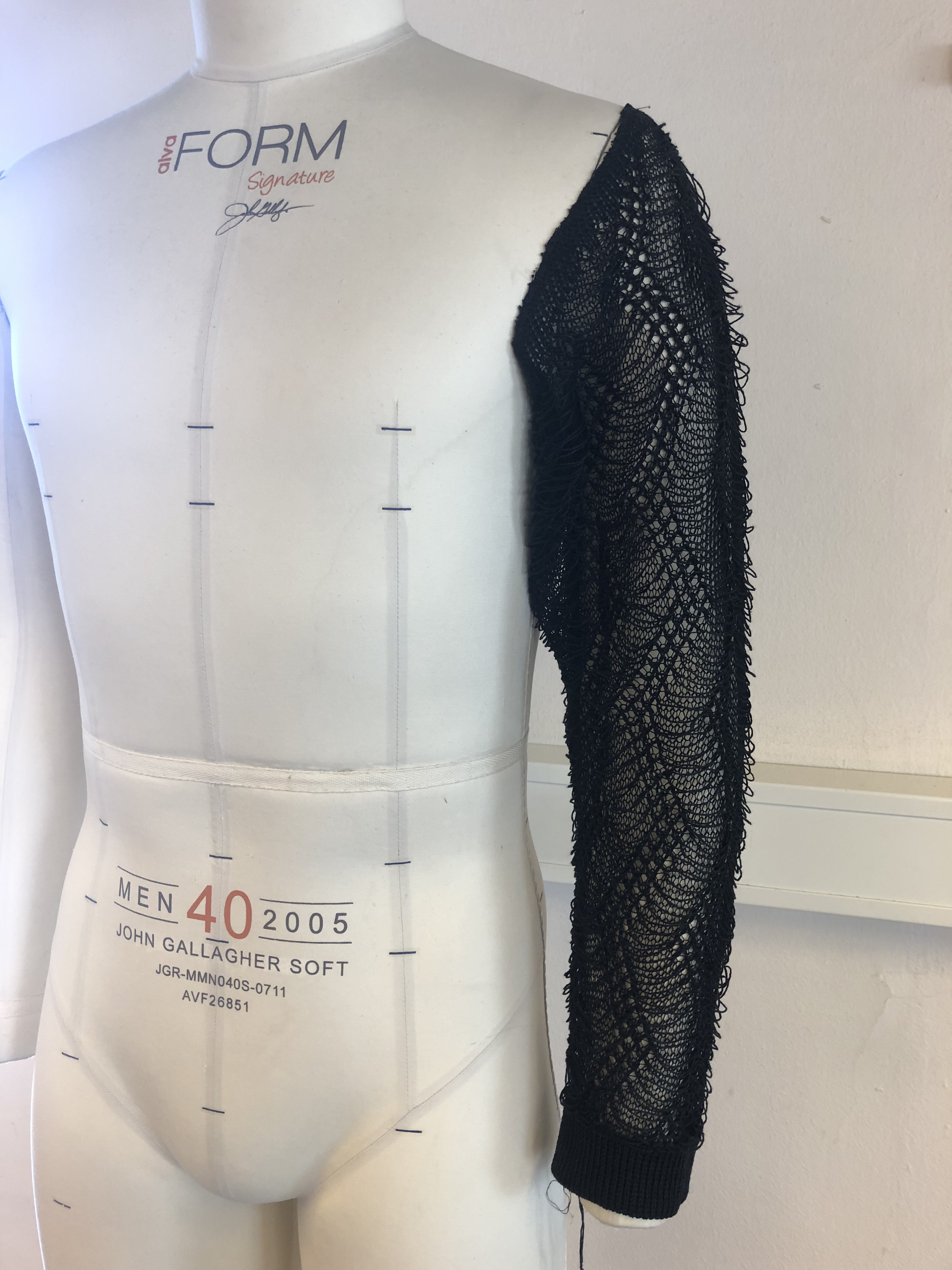 For the knit i was inspired by an old flight suit where certain strings were attached what in the end made a pattern. I applied the ‘Ajour‘ technique to mimic the aesthetic.